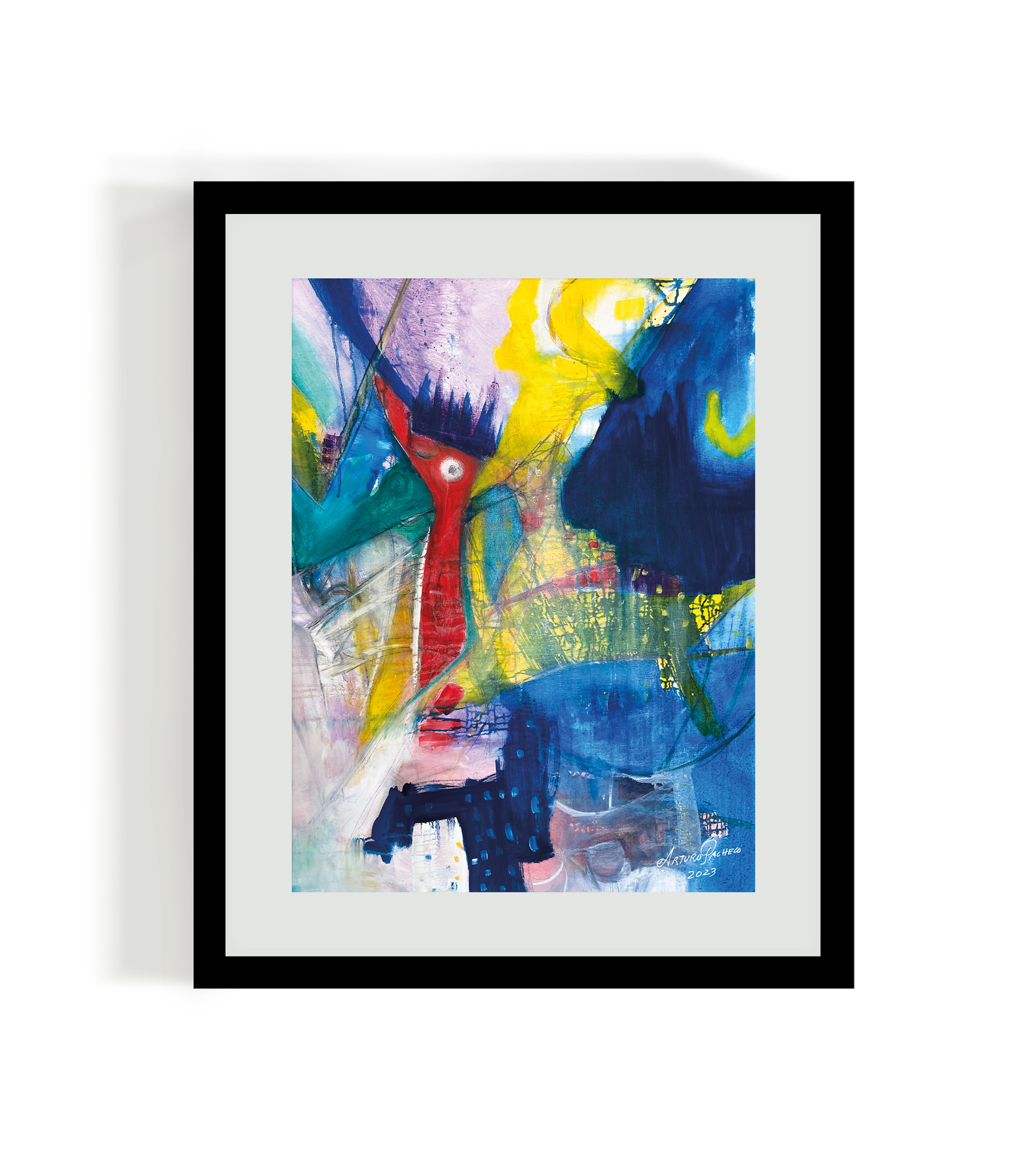 “Escapada en la Ciudad” es una obra vibrante y enérgica que captura la esencia del movimiento urbano a través de formas abstractas y contrastes intensos. Sus trazos expresivos y los tonos dominantes en azul, rojo y amarillo evocan la intensidad de la vida en la ciudad, donde el bullicio y la creatividad conviven en un mismo espacio.