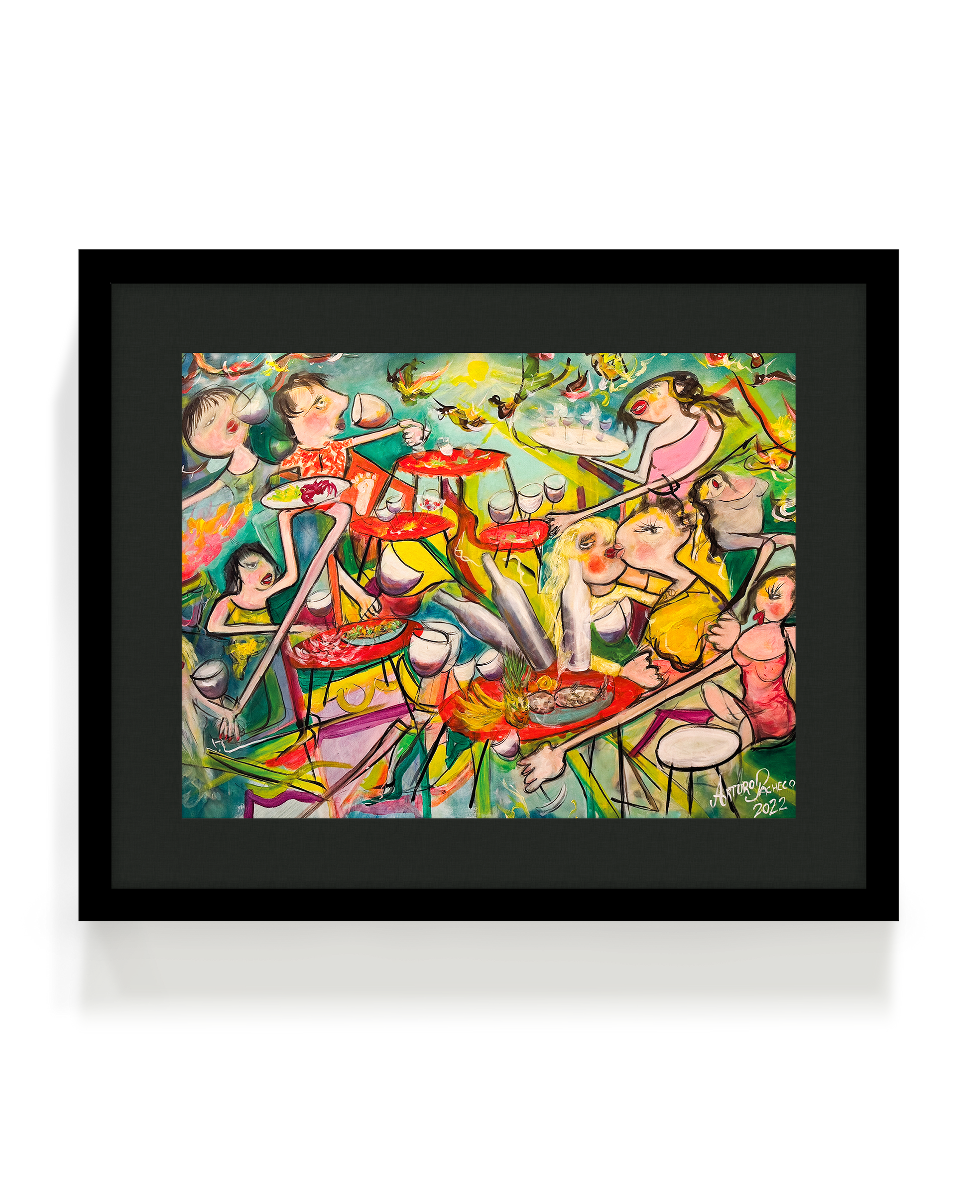 Happy Dinner es una celebración visual del color, el caos y la alegría de compartir. Esta obra explosiva y expresiva captura una cena llena de vida, donde los personajes se funden en una escena vibrante y dinámica. Ideal para quienes buscan llenar sus espacios de energía, conversación y arte con personalidad.